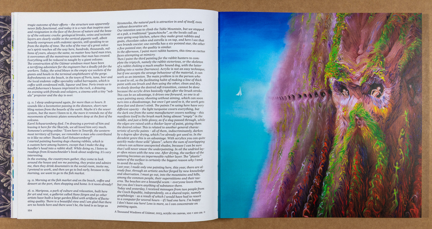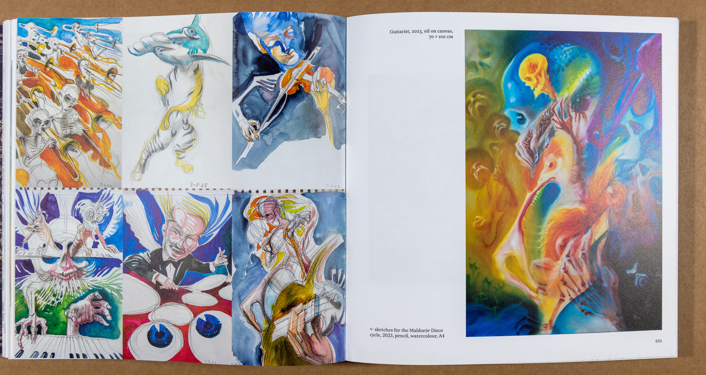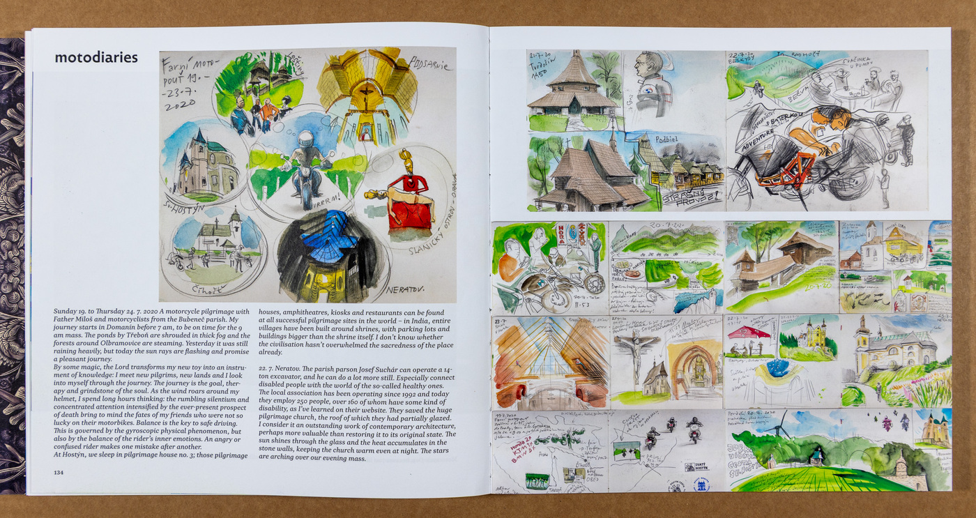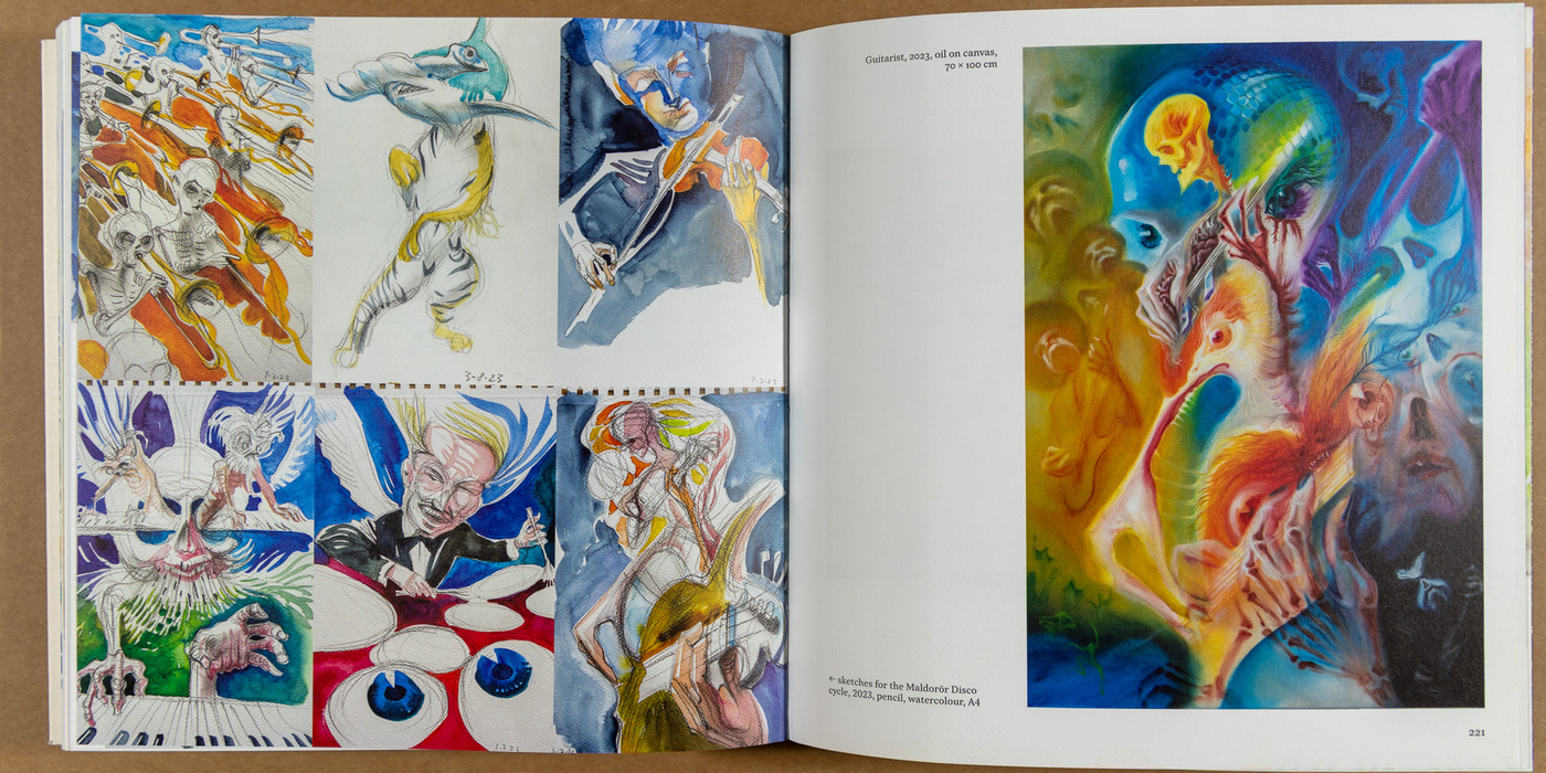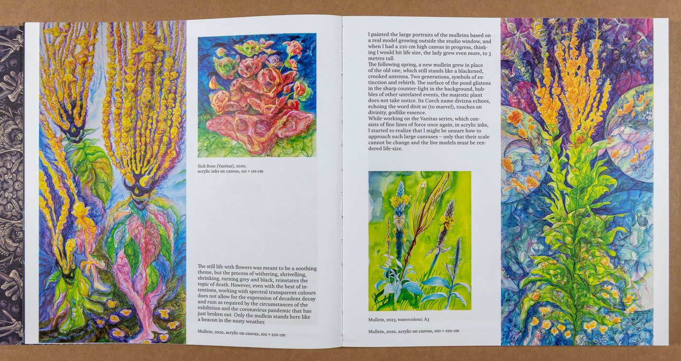 František Štorm (* 1966) is a world-known type designer, but also a composer and a founding member of the band Master’s Hammer. In parallel with his long-term work in the field of applied graphics and music, free work has always been created, especially linocuts and drawings, but in recent years also paintings of larger formats. The impetus for creating this book came from the success of exhibitions featuring paintings, graphics, and unique video projections. The book entitled Libero captures Štorm’s creative surge of recent years, in which typography, book illustrations, and graphic commissions naturally coexist with free work. Oil paintings inspired by, for example, South Bohemian ponds or travel experiences are increasingly gaining ground. Font shapes that we usually do not pay much attention to in books, together with painting, graphics and drawing, create a close connection in which both of Štorm’s lines of work illuminate each other in unexpected contexts. Libero also captures the breadth of his artistic scope in the visual processing of musical activities, thanks to which he appeals to a large circle of fans. The reader can enjoy wondrous, sometimes grotesquely psychedelic works in the neighbourhood of imaginative graphics and typography, the curves of which are the author’s defining gesture.