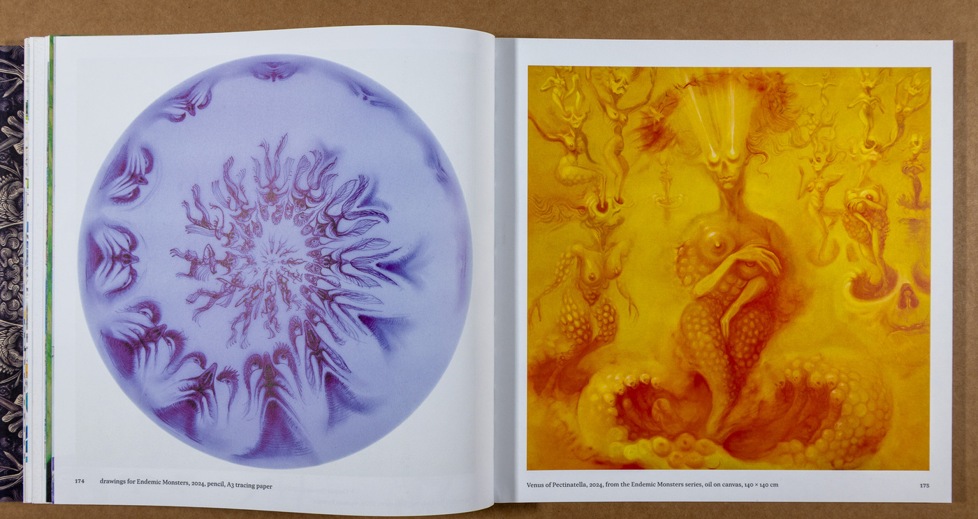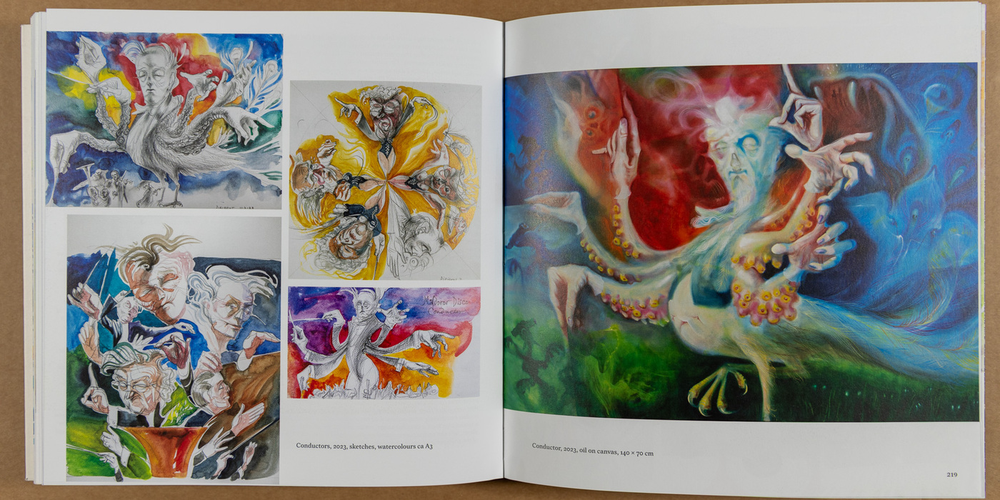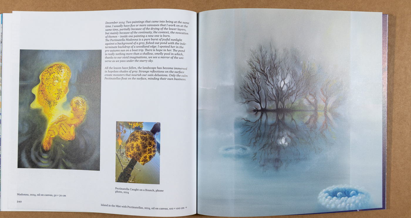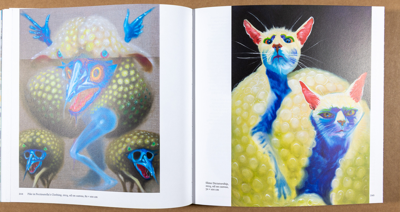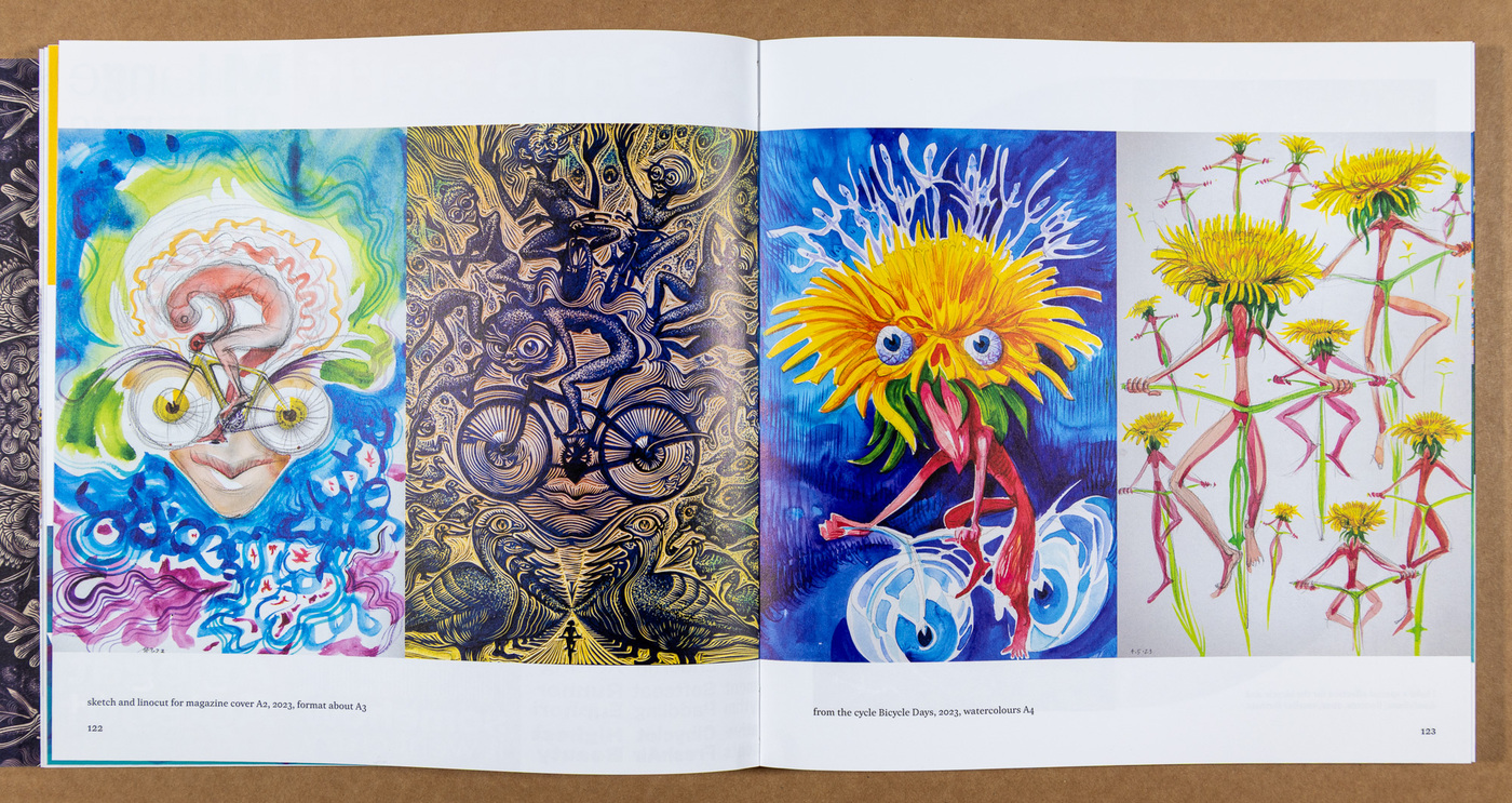František Štorm (* 1966) is a world-known type designer, but also a composer and a founding member of the band Master’s Hammer. In parallel with his long-term work in the field of applied graphics and music, free work has always been created, especially linocuts and drawings, but in recent years also paintings of larger formats. The impetus for creating this book came from the success of exhibitions featuring paintings, graphics, and unique video projections. The book entitled Libero captures Štorm’s creative surge of recent years, in which typography, book illustrations, and graphic commissions naturally coexist with free work. Oil paintings inspired by, for example, South Bohemian ponds or travel experiences are increasingly gaining ground. Font shapes that we usually do not pay much attention to in books, together with painting, graphics and drawing, create a close connection in which both of Štorm’s lines of work illuminate each other in unexpected contexts. Libero also captures the breadth of his artistic scope in the visual processing of musical activities, thanks to which he appeals to a large circle of fans. The reader can enjoy wondrous, sometimes grotesquely psychedelic works in the neighbourhood of imaginative graphics and typography, the curves of which are the author’s defining gesture.