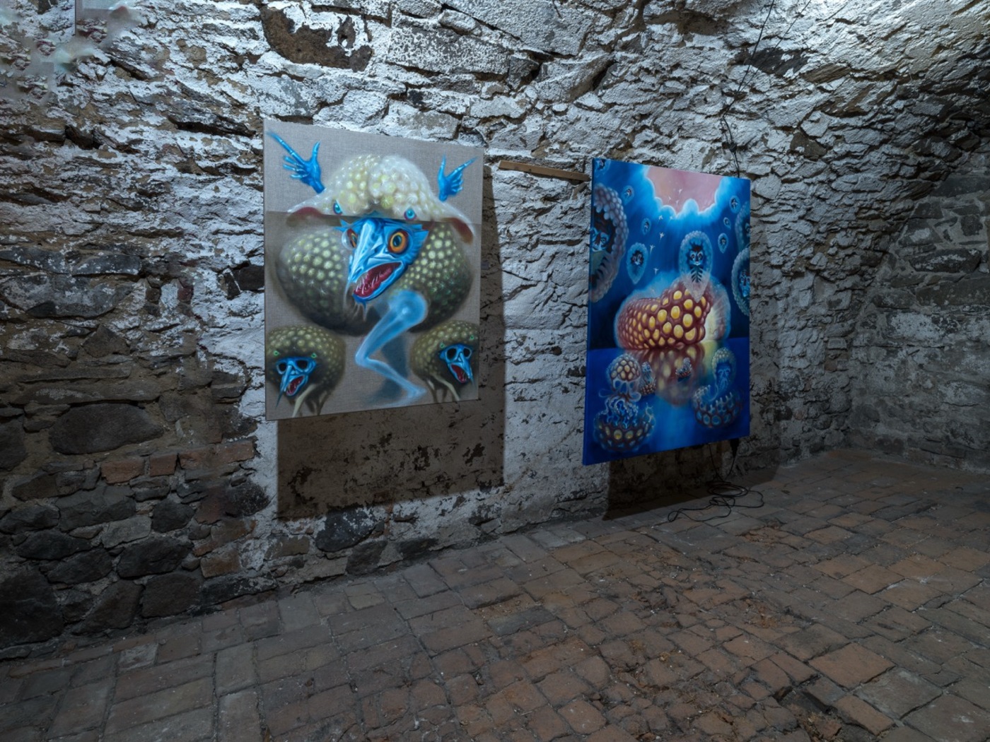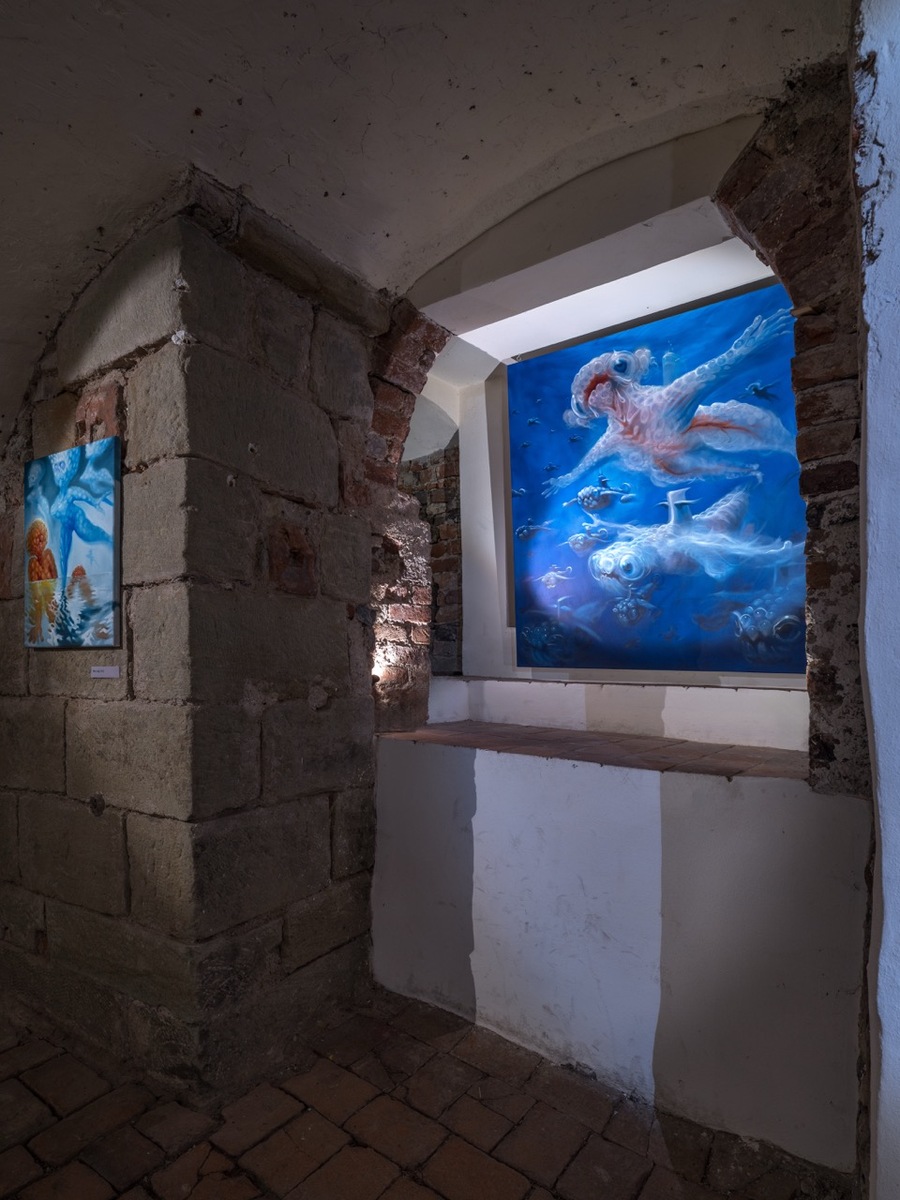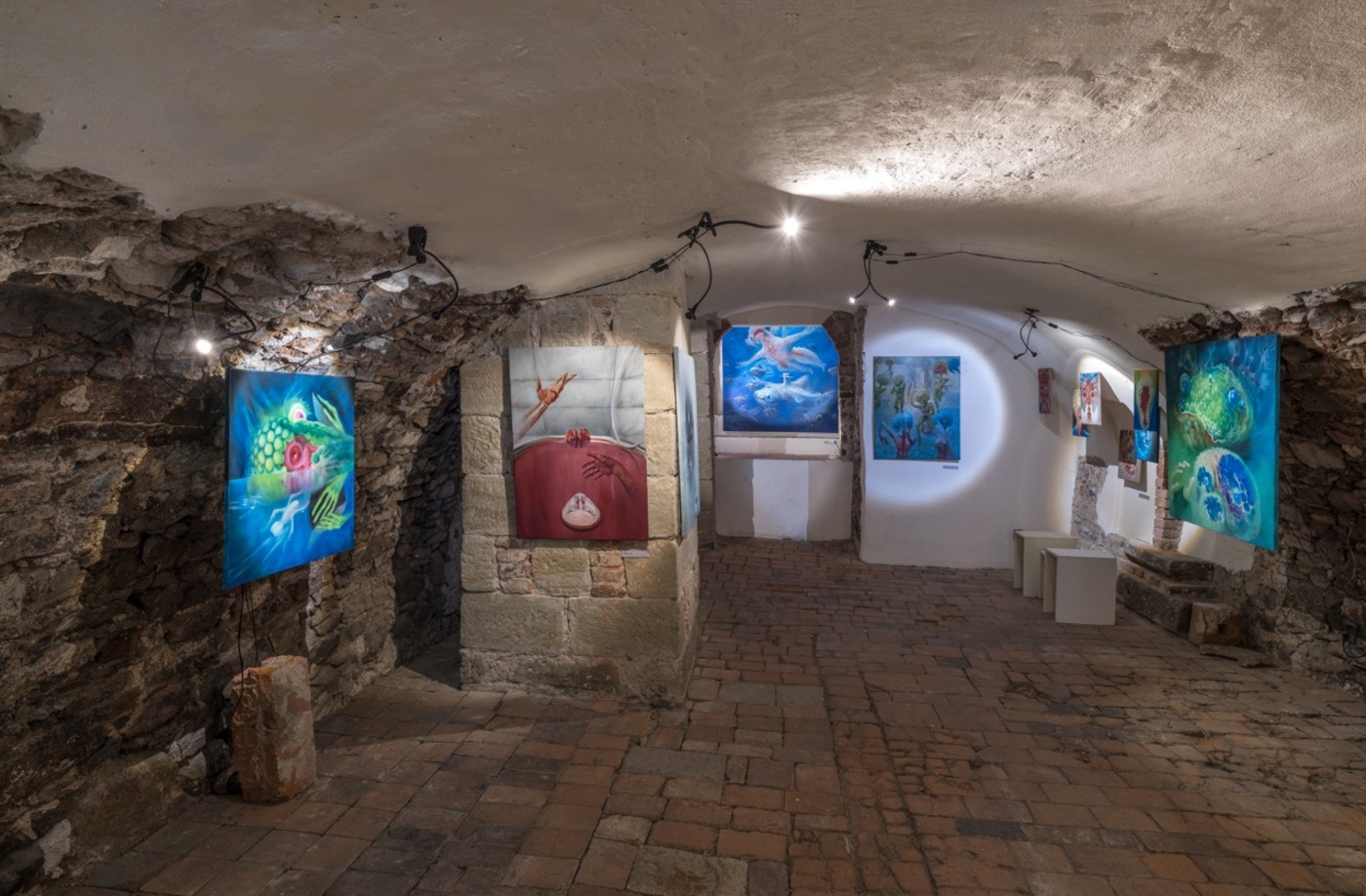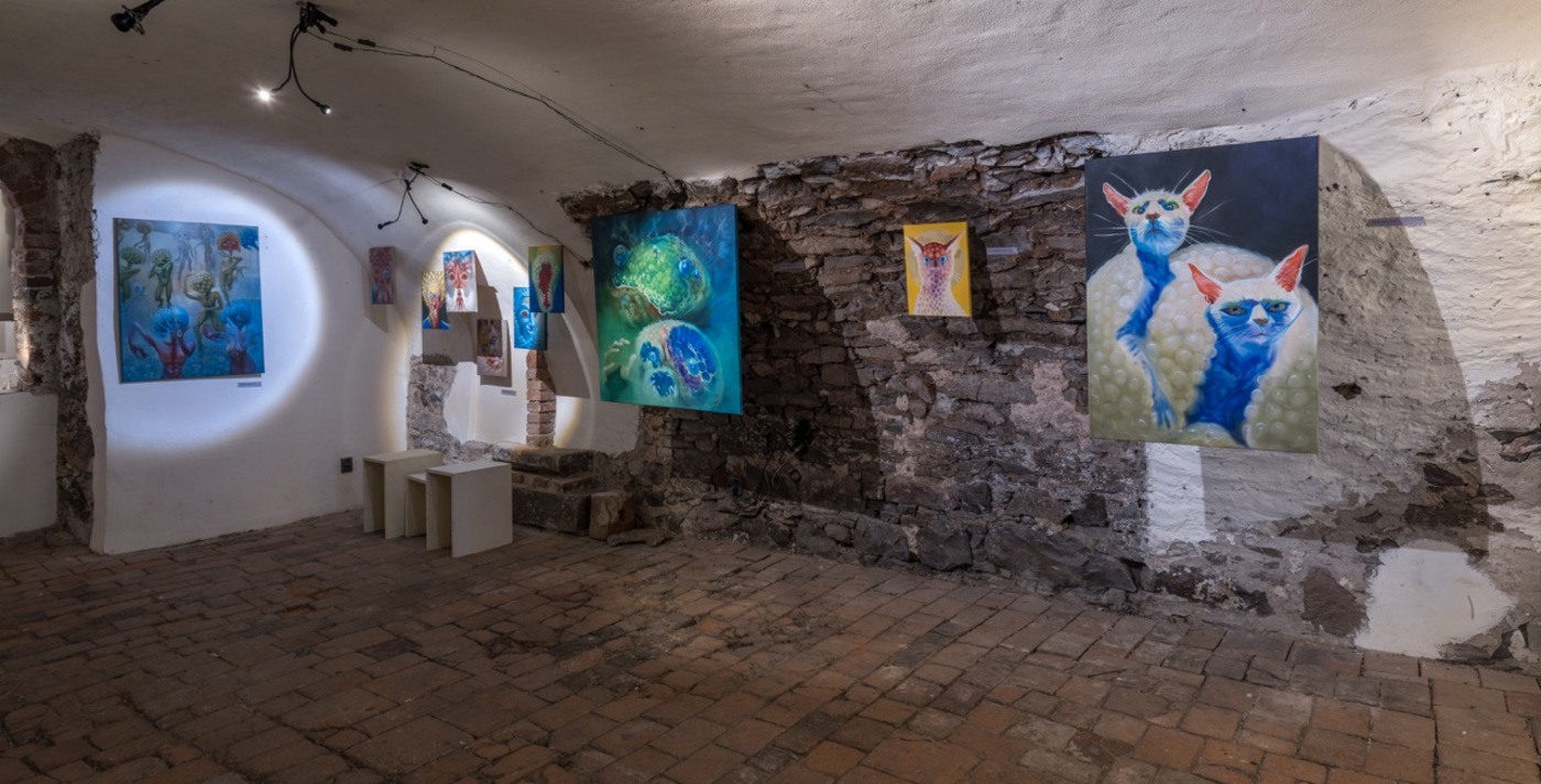 The word “angel” comes from the Greek expression “ἄγγελος”, meaning “messenger” between man and God. But what form does God have? According to Plato’s dialogue Timaeus, the most perfect geometric body is an oval sphere. Everywhere in the universe we can find spherical objects – stars, planets, moons, black holes… And also slippery, slimy and vehemently drooling organisms occupying murky stagnant waters buried under a sickly veil of fog from poisonous fumes. Yes, we mean the slimy loaves (Pectinatella magnifica) annexing the ponds in Štorm’s place of residence, which have become the artist’s gooey muses and swollen guides to Dante’s Virgil’s Inferno. The similarity to the whispering green fairies that appear after the unbridled consumption of absinthe is also not purely coincidental. The Bochnatky, as an inexhaustible source of Štorm's inspiration, truly seem to come from noumenal spheres and transcendental planes to bring us a new gospel of the true nature of things "an sich", where beauty means something other than what is expected and usual. "Abomination is not an obstacle, but a goal," as the exhibiting artist declared.