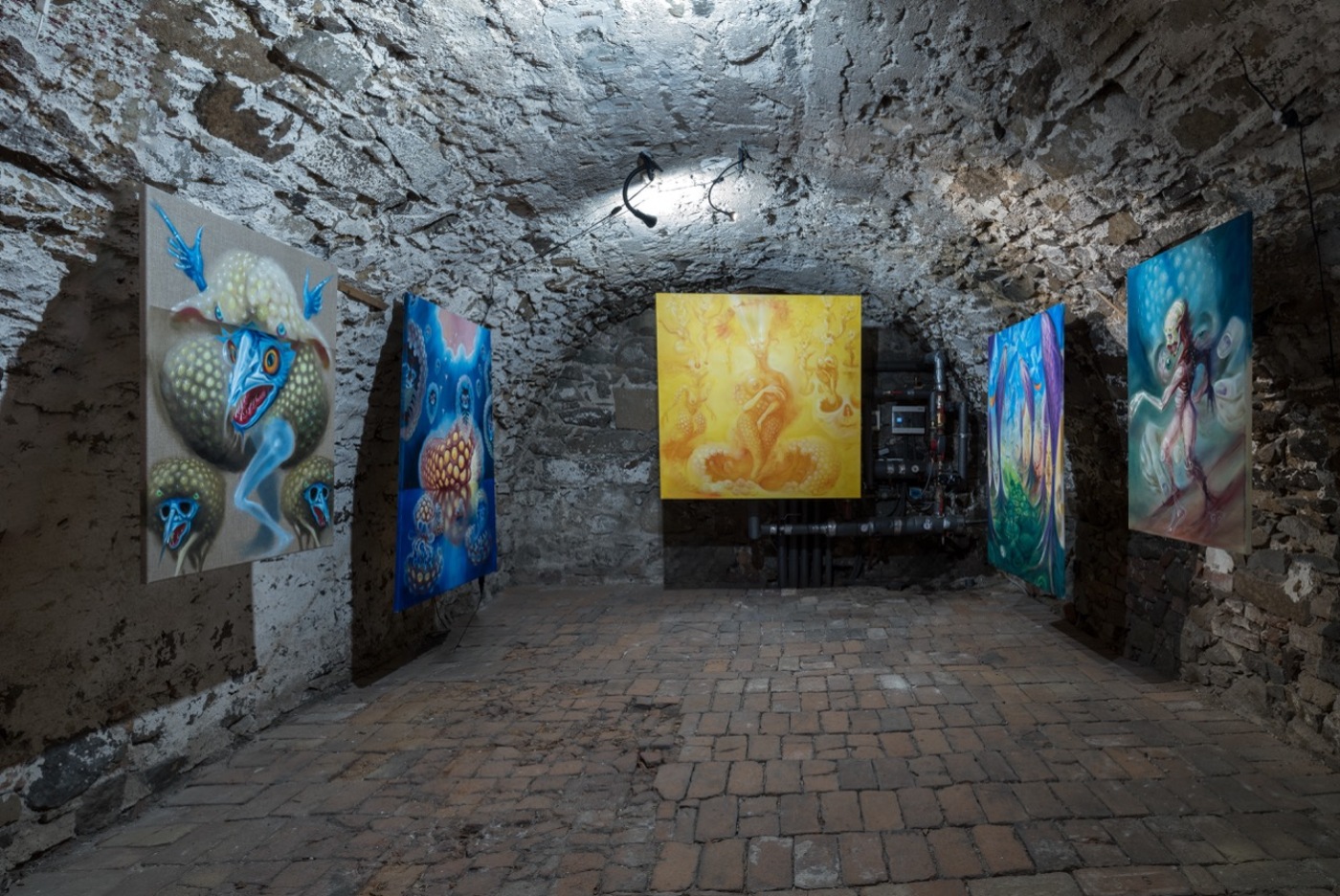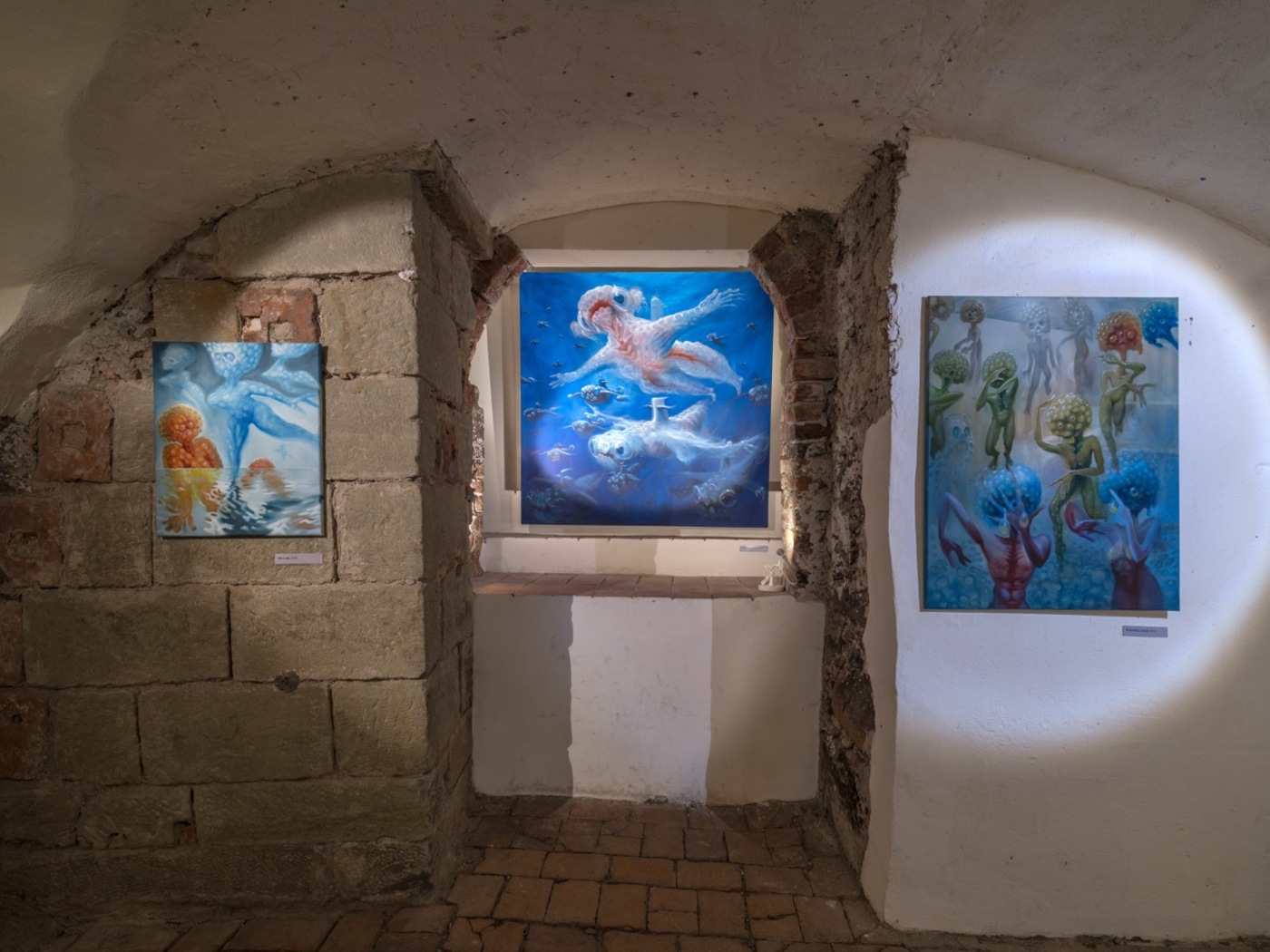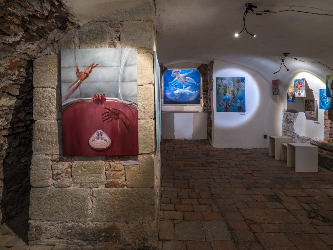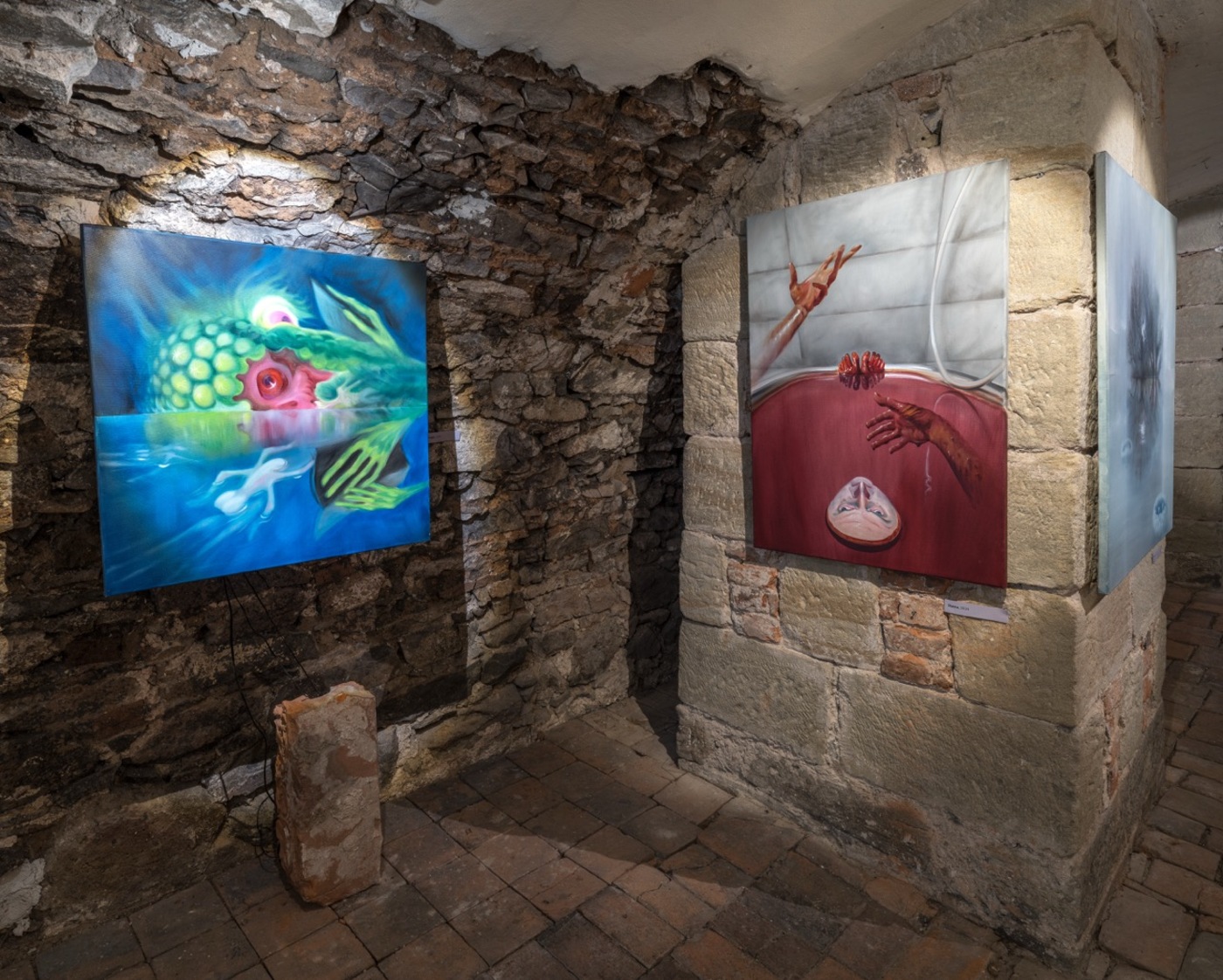 The word “angel” comes from the Greek expression “ἄγγελος”, meaning “messenger” between man and God. But what form does God have? According to Plato’s dialogue Timaeus, the most perfect geometric body is an oval sphere. Everywhere in the universe we can find spherical objects – stars, planets, moons, black holes… And also slippery, slimy and vehemently drooling organisms occupying murky stagnant waters buried under a sickly veil of fog from poisonous fumes. Yes, we mean the slimy loaves (Pectinatella magnifica) annexing the ponds in Štorm’s place of residence, which have become the artist’s gooey muses and swollen guides to Dante’s Virgil’s Inferno. The similarity to the whispering green fairies that appear after the unbridled consumption of absinthe is also not purely coincidental. The Bochnatky, as an inexhaustible source of Štorm's inspiration, truly seem to come from noumenal spheres and transcendental planes to bring us a new gospel of the true nature of things "an sich", where beauty means something other than what is expected and usual. "Abomination is not an obstacle, but a goal," as the exhibiting artist declared.
