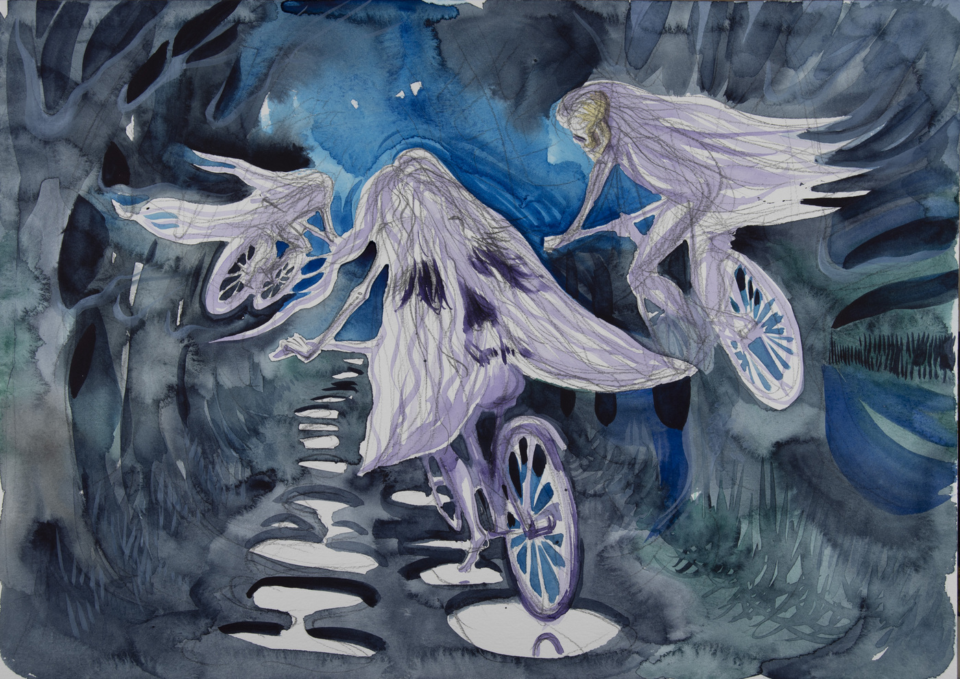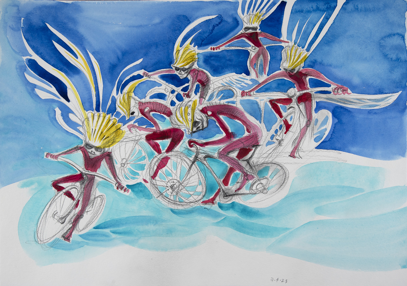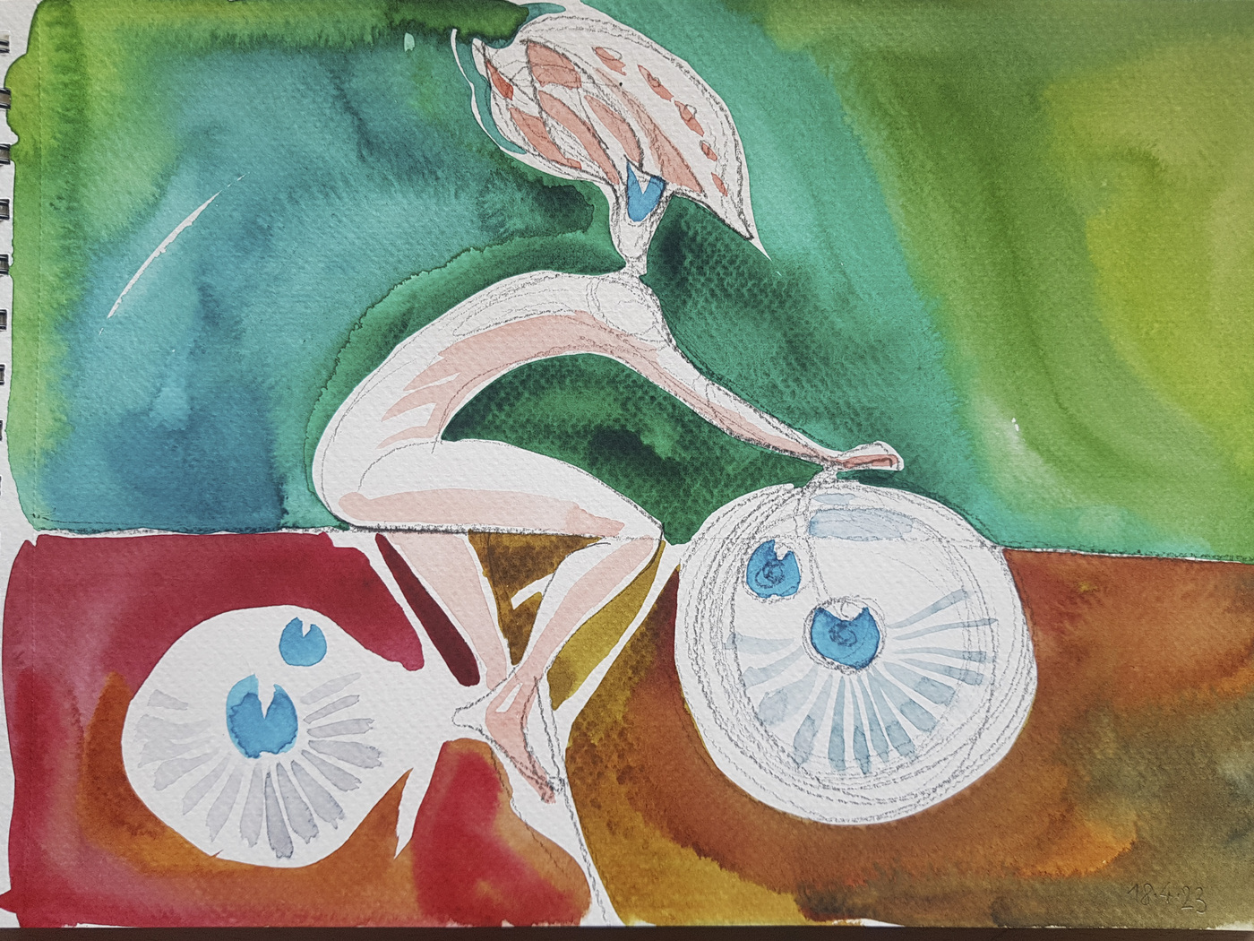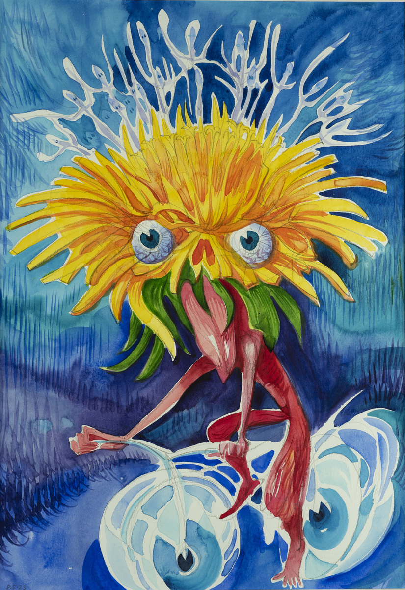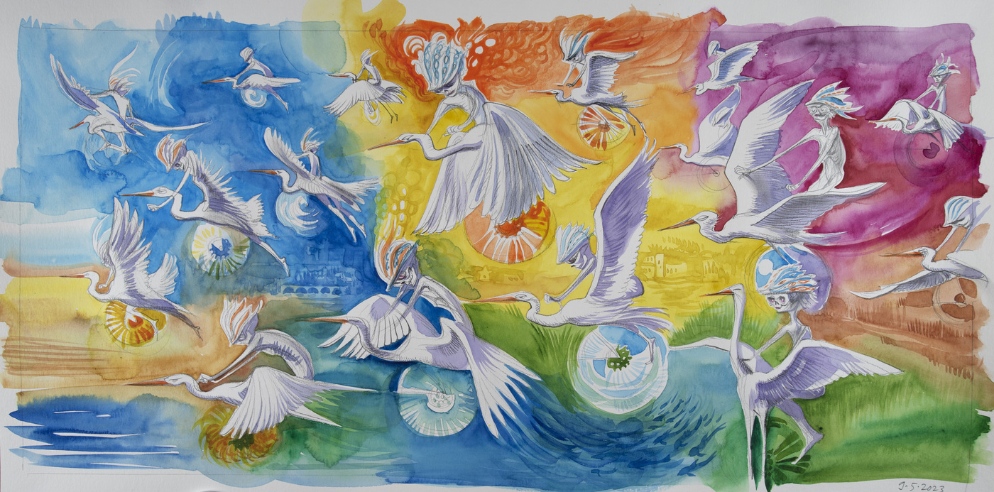 The cycle of watercolors on the theme of Bicycle Days was created on the occasion of the 80th anniversary of the famous Bicycle Day, which is associated with the invention of LSD. However, riding a bicycle in pure nature is an uplifting experience even without any hallucinogens. The gyroscopic miracle of balance and riding through avenues of blossoming trees...